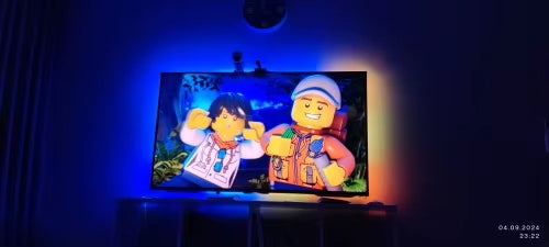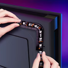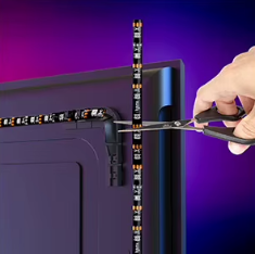 La tira de luz está diseñada para televisores de entre 55” y 65” y se puede recortar para adaptarse a pantallas más pequeñas si es necesario.