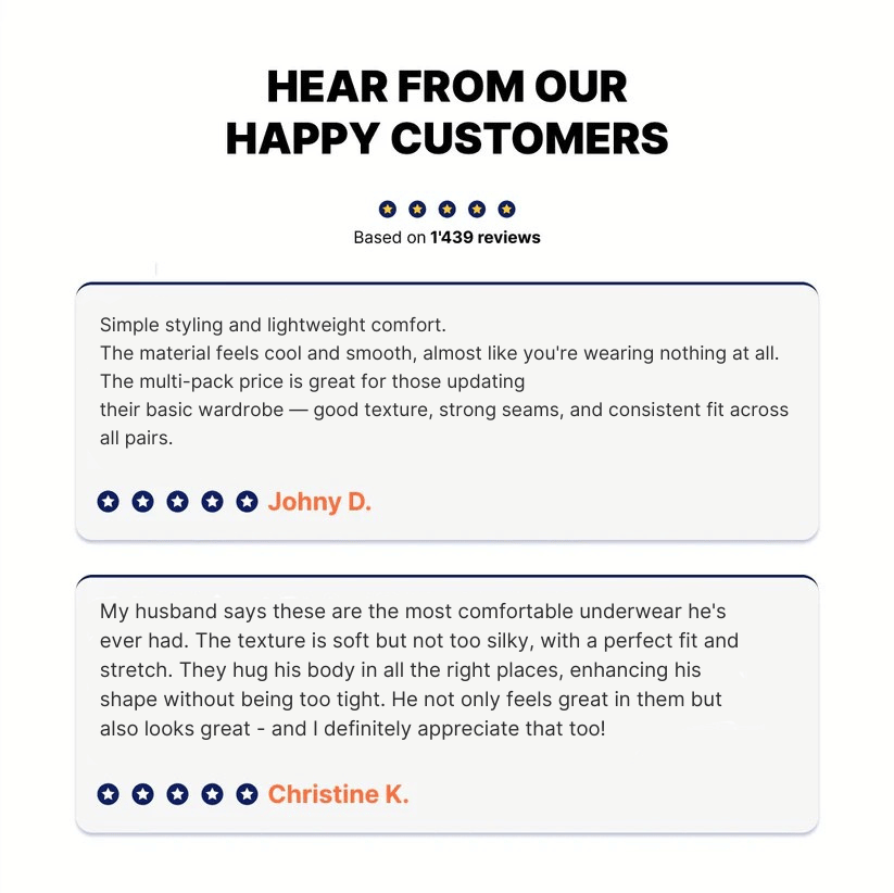 Because ordinary boxers just don’t cut it. While other underwear might scratch, pinch, ride up, or wear out after a few washes, we choose quality at every step. Here’s how our Bamboo Boxers stand apart from regular cotton boxers: