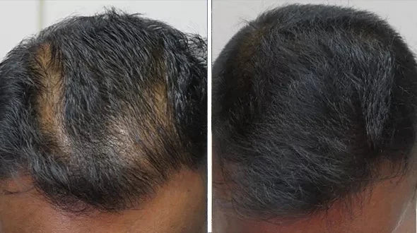 Most men notice less shedding within the first 2–4 weeks. Visible thickening and stronger regrowth typically appear after 6–8 weeks of consistent use. Like fitness, results build with routine — the longer you use it, the better your scalp responds.