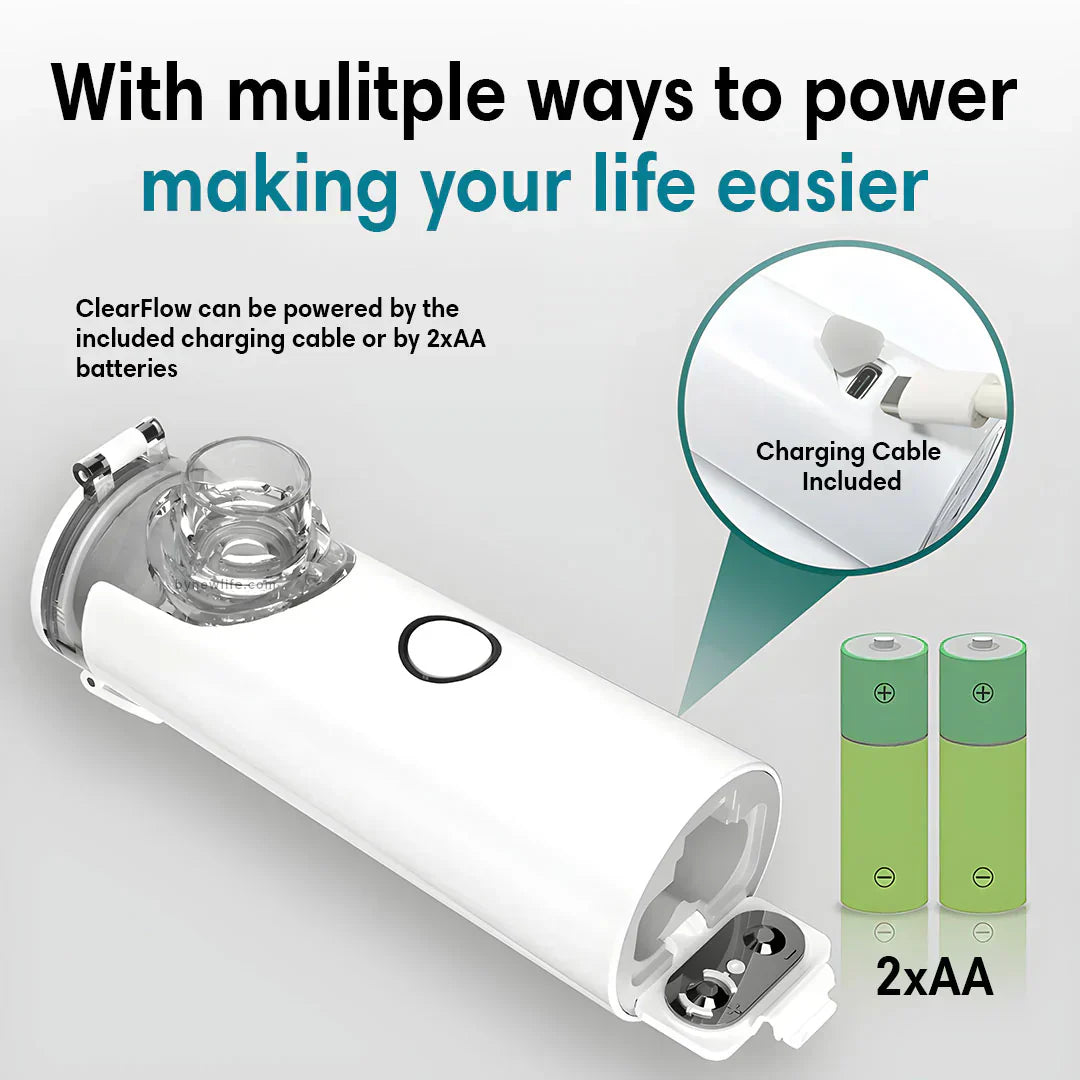 Natural Breathing Aid uses a medical vibrating mesh technology to create ultrafine mist that hydrates your chest and throat. This soothes your airways, loosens trapped mucus and deep cleans harmful bacteria.